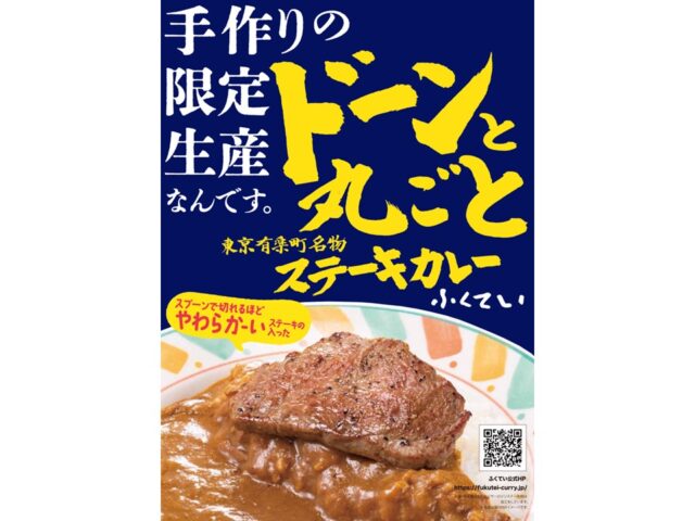 ふくていカレーのステーキは、スプーンで切れるほどの柔らかさと、口の中で広がる豊かな旨味が特徴です。